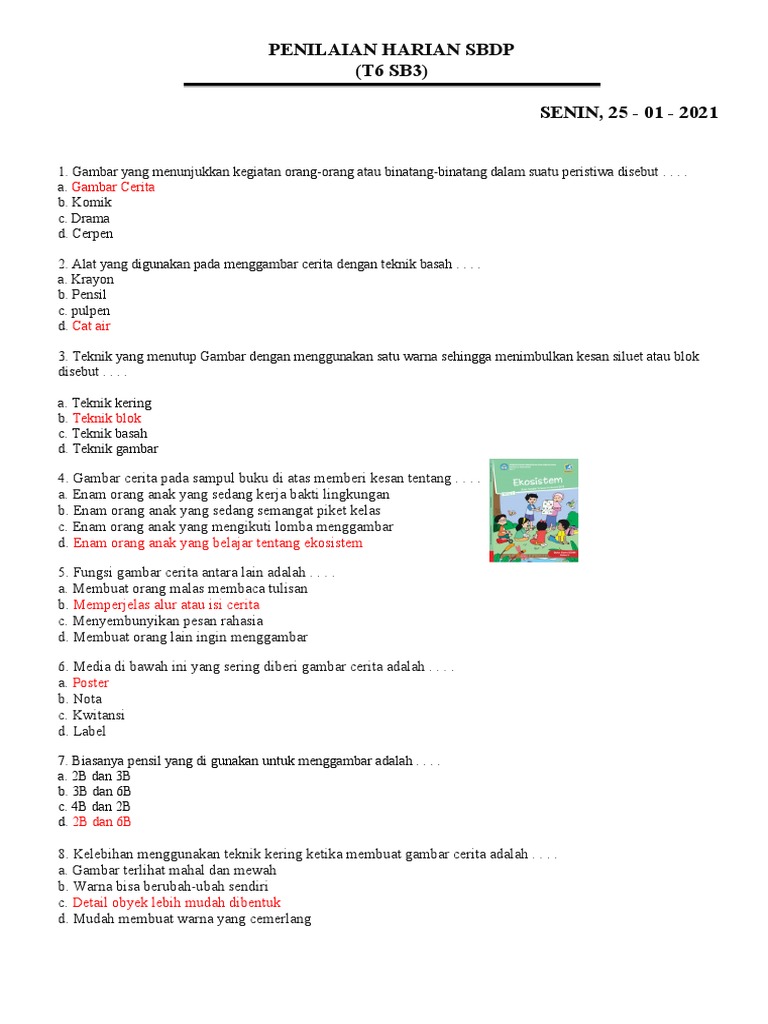 Soal Ph Sbdp T6 Sb3 Pdf from imgv2-2-f.scribdassets.com Sejalan dengan pernyataan di atas, herawati dan iriaji (herawati dan iriaji, 1997, hlm. Di bawah ini yang termasuk struktur teks cerita inspiratif adalah a orientasi from biology 162 at sma negeri 9 manado Pada teknik ini kita sama artinya dengan menciptakan gradasi warna yang halus. Gambar ilustrasi merupakan karya seni rupa dua dimensi yang bertujuan untuk memperjelas maksud dari cerita, berita maupun pesan. Penilaian akhir semester (pas) untuk mata pelajaran sbdp kelas 5 sd/mi dengan materi : Teknik menggambar dussel atau gosok ini bisa dikatakan teknik yang cukup sulit untuk dilakukan dan perlu latihan berulang kali untuk menghasilkan sebuah gambar yang baik. 40) berikut di bawah ini tidak termasuk dalam kategori biaya penjualan a)gaji dan komisi salesman b)gaji pimpinan dan pegawai kantor c)biaya advertensi d)depresiasi alat angkut penjualan e) depresiasi alat angkut pembelian 41) laporan yang menunjukkan perubahan posisi keuangan pada tanggal tertentu, biasanya terdiri dari aktiva, utang dan modal disebut: Pensil yang paling cocok untuk menggunakan teknik ini adalah pensil yang lunak seperti pensil 2b, 3b dan seterusnya.